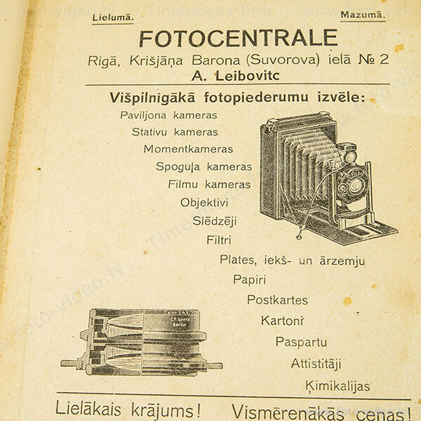 Šī ir neliela virtuālā ekspozīcija, kas piedāvā ieskatu mūsu vēsturiskajā foto tehnikas kolekcijā. Apmeklējot mūsu veikalu Raiņa ielā 22, Jelgavā, Tev būs iespēja apskatīt arī daļu no šīm unikālajām ierīcēm klātienē. Kaut gan visa kolekcija nav izlikta pastāvīgai apskatei, mēs ar prieku dalāmies ar tās stāstiem un vērtību fotogrāfijas vēsturē.